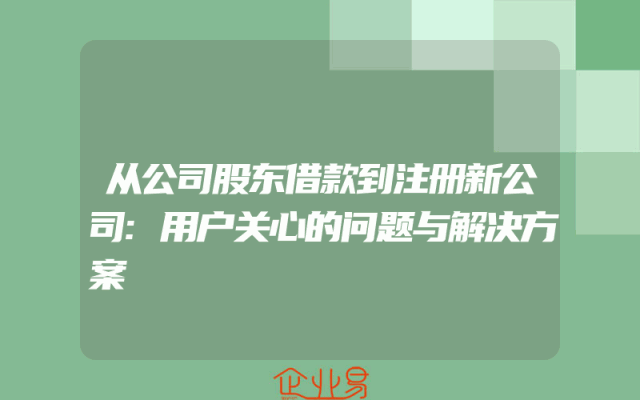 - 从公司股东借款到注册新公司:用户关心的问题与解决方案