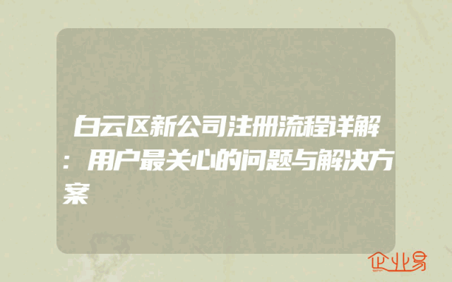 - 白云区新公司注册流程详解:用户最关心的问题与解决方案