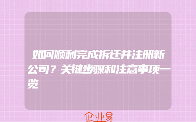- 如何顺利完成拆迁并注册新公司?关键步骤和注意事项一览