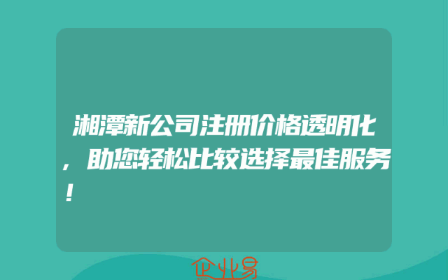 - 湘潭新公司注册价格透明化,助您轻松比较选择最佳服务!