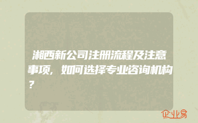 - 湘西新公司注册流程及注意事项,如何选择专业咨询机构?