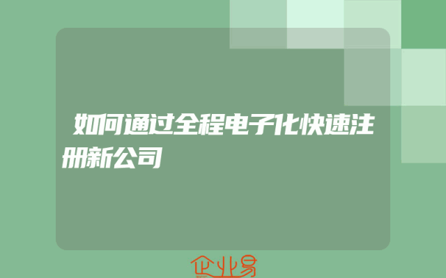 - 如何通过全程电子化快速注册新公司?用户关心的问题解答随着科技的发展,越来越多的企业选择通过全程电子化的方式来注册新公司。这种方式不仅快捷方便,而且可以节省大量的时间和精力。然而,对于初次接触全程电子化注册的企业来说,可能会有一些疑问和困惑。