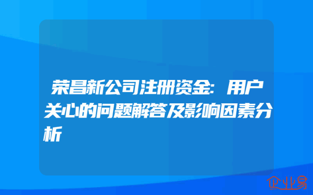 - 荣昌新公司注册资金:用户关心的问题解答及影响因素分析