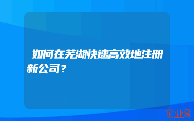 - 如何在芜湖快速高效地注册新公司?