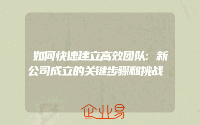 - 如何快速建立高效团队:新公司成立的关键步骤和挑战解析在当今的商业环境中,高效的团队是任何成功企业的关键。然而,对于新成立的公司来说,建立一个高效团队可能会面临许多挑战。本文将探讨新公司如何快速建立高效团队的关键步骤和可能面临的挑战。1