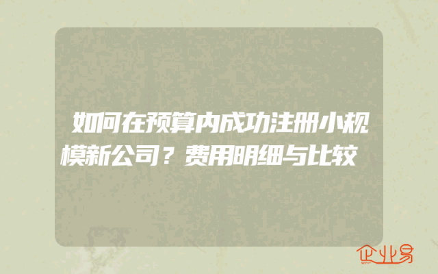 - 如何在预算内成功注册小规模新公司?费用明细解析与比较在创业的道路上,选择一家合适的公司类型是至关重要的。对于初创企业来说,小规模新公司的注册流程相对简单且成本较低,因此成为了许多人的选择。本文将详细介绍如何在预算内成功注册小规模新公司,并对