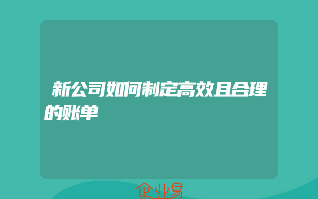 - 新公司如何制定高效且合理的账单