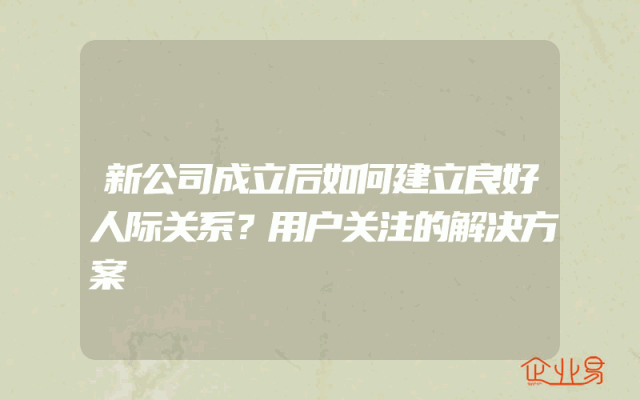 - 新公司成立后如何建立良好人际关系?用户关注的解决方案