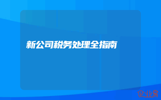 - 新公司税务处理全指南