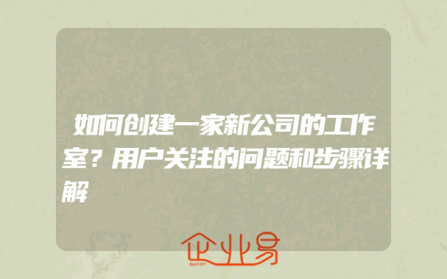 - 如何创建一家新公司的工作室?用户关注的问题和步骤详解