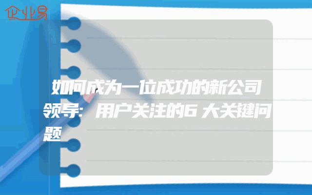 - 如何成为一位成功的新公司领导:用户关注的6大关键问题