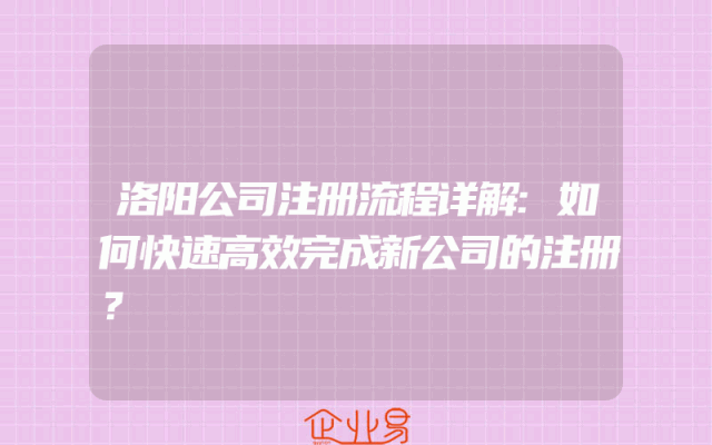 - 洛阳公司注册流程详解:如何快速高效完成新公司的注册?