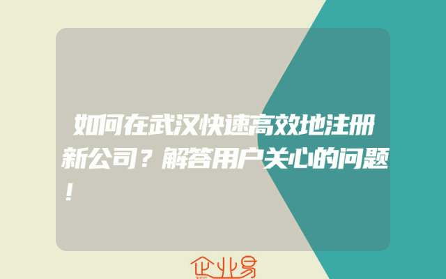 - 如何在武汉快速高效地注册新公司?解答用户关心的问题!