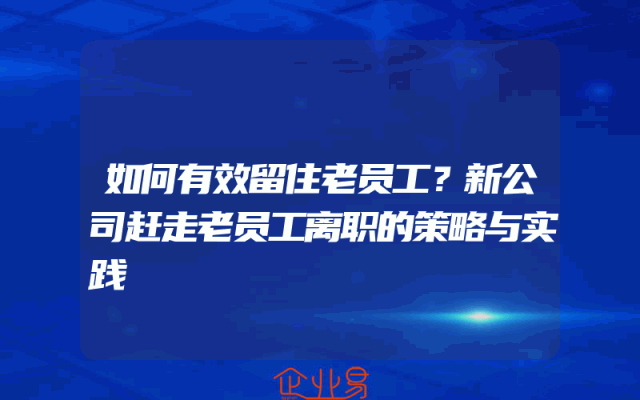 - 如何有效留住老员工?新公司赶走老员工离职的策略与实践在当今竞争激烈的商业环境中,企业面临着吸引和留住优秀员工的挑战。尤其是对于新成立的公司来说,如何有效地留住老员工成为了关键问题。本文将探讨一些新公司赶走老员工离职的策略与实践,以及如何通过