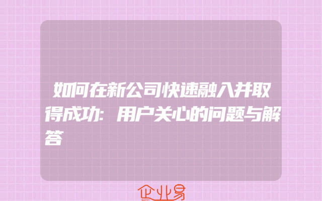 - 如何在新公司快速融入并取得成功:用户关心的问题与解答