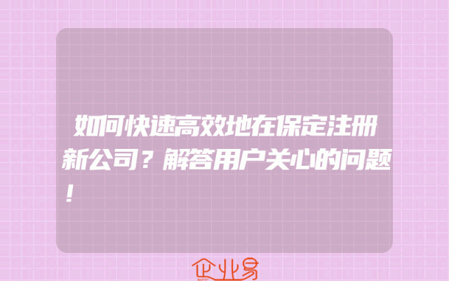 - 如何快速高效地在保定注册新公司?解答用户关心的问题!