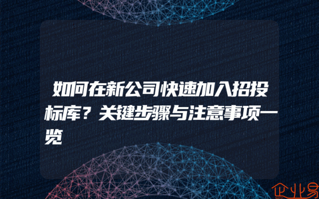 - 如何在新公司快速加入招投标库?关键步骤与注意事项一览