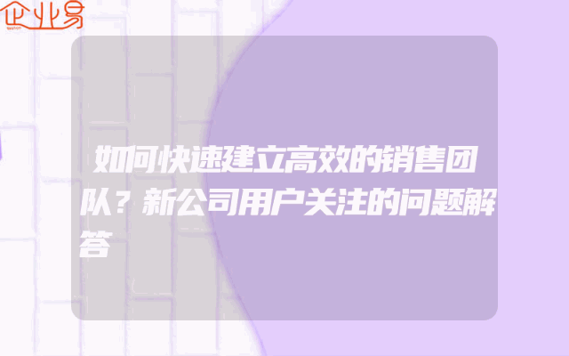 - 如何快速建立高效的销售团队?新公司用户关注的问题解答