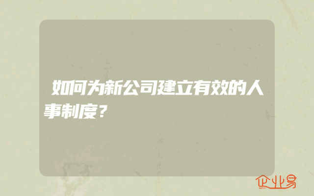 - 如何为新公司建立有效的人事制度?解答用户最关心的问题在现代企业中,人事制度是组织管理的重要组成部分。一个有效的人事制度可以确保员工的权益得到保障,提高员工的满意度和工作效率,从而推动企业的发展。然而,对于新成立的公司来说,如何建立一套适合自