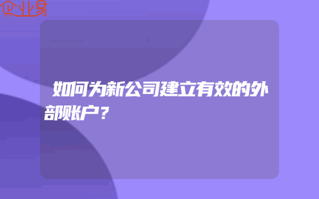 - 如何为新公司建立有效的外部账户?解答用户最关心的问题在当今数字化时代,企业需要建立有效的外部账户来管理其财务和业务活动。对于新成立的公司来说,正确地建立和管理这些账户至关重要。本文将回答用户最关心的问题,提供有关如何为新公司建立有效外部账户