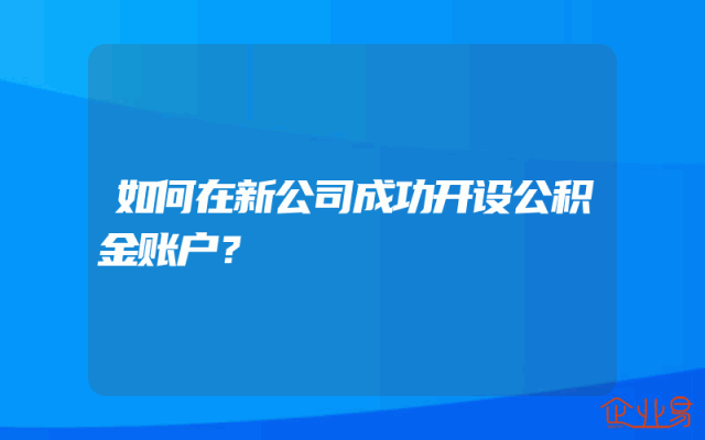 - 如何在新公司成功开设公积金账户?解答用户最关心的问题公积金是一种为职工提供住房、医疗、教育等多方面保障的制度。在许多国家和地区,包括中国,都有类似的公积金制度。如果你是新员工,那么如何成功开设公积金账户可能是你最关心的问题之一。本文将为你解