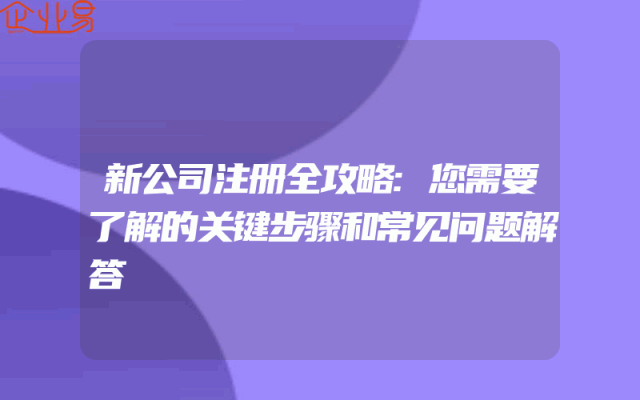 - 新公司注册全攻略:您需要了解的关键步骤和常见问题解答