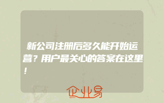 - 新公司注册后多久能开始运营?用户最关心的答案在这里!