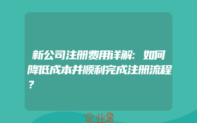 - 新公司注册费用详解:如何降低成本并顺利完成注册流程?
