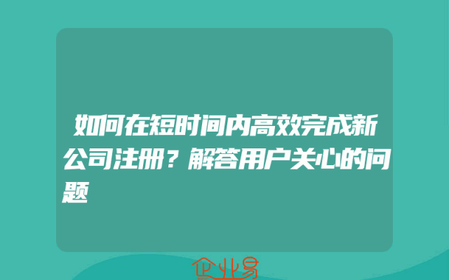 - 如何在短时间内高效完成新公司注册?解答用户关心的问题