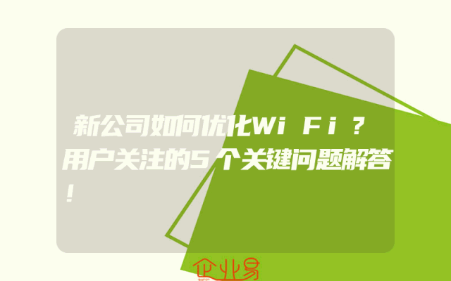 - 新公司如何优化WiFi?用户关注的5个关键问题解答!