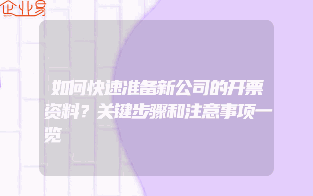 - 如何快速准备新公司的开票资料?关键步骤和注意事项一览
