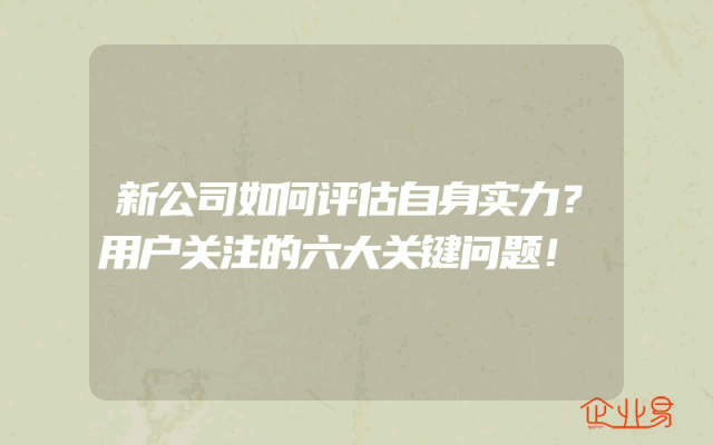 - 新公司如何评估自身实力?用户关注的六大关键问题!