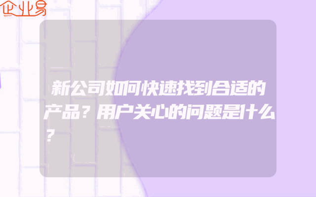 - 新公司如何快速找到合适的产品?用户关心的问题是什么?
