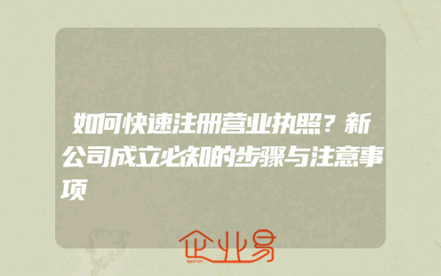 - 如何快速注册营业执照?新公司成立必知的步骤与注意事项
