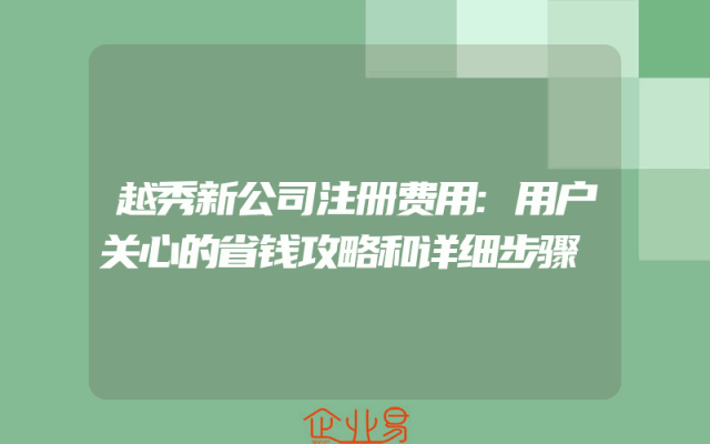 - 越秀新公司注册费用:用户关心的省钱攻略和详细步骤