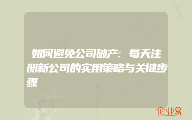 - 如何避免公司破产:每天注册新公司的实用策略与关键步骤