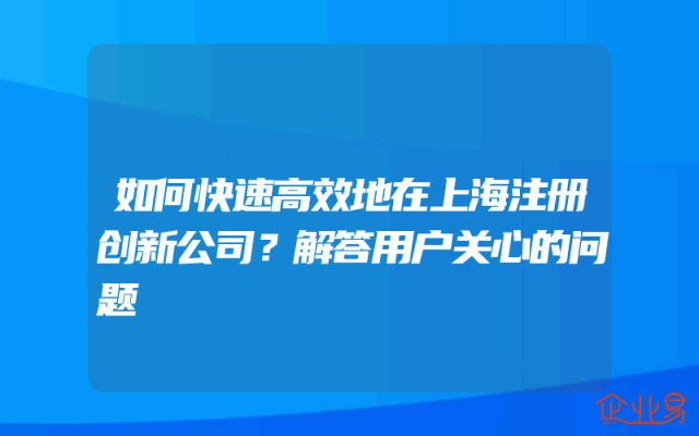 - 如何快速高效地在上海注册创新公司?解答用户关心的问题
