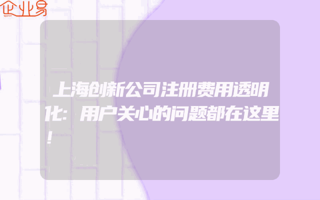 - 上海创新公司注册费用透明化:用户关心的问题都在这里!