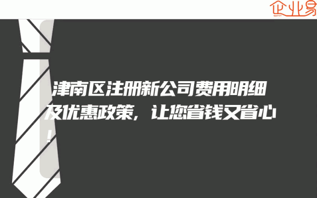 - 津南区注册新公司费用明细及优惠政策,让您省钱又省心!