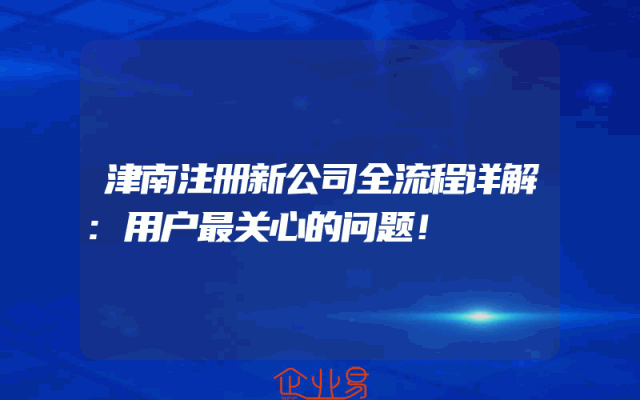 - 津南注册新公司全流程详解:用户最关心的问题!