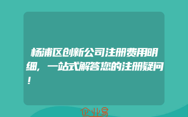 - 杨浦区创新公司注册费用明细,一站式解答您的注册疑问!