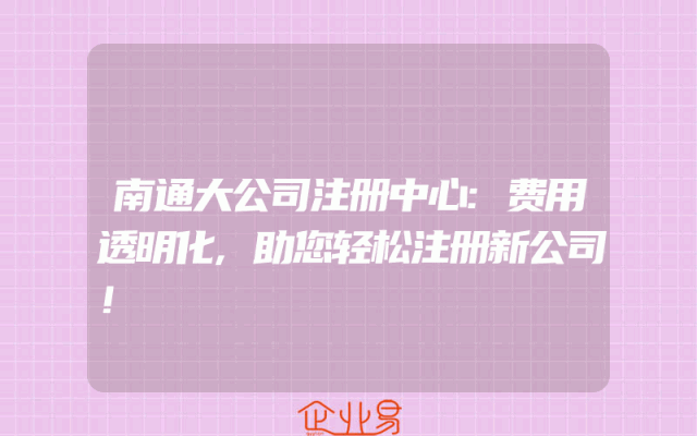 - 南通大公司注册中心:费用透明化,助您轻松注册新公司!