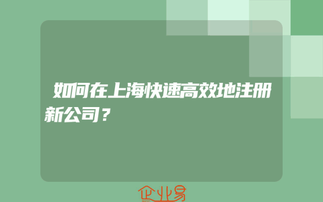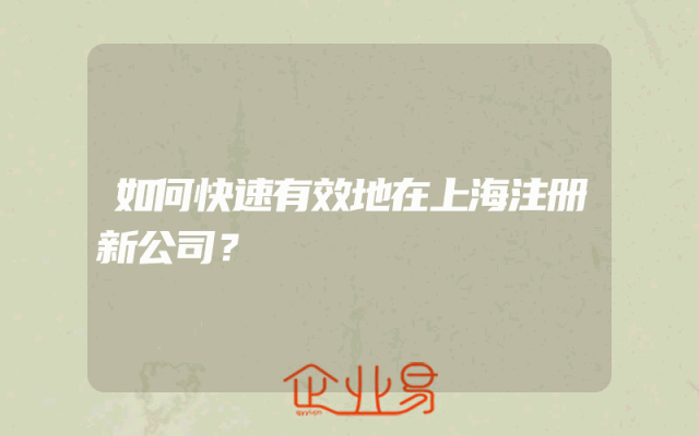 - 如何快速高效地在上海注册新公司?用户关心的问题解答!在中国经济快速发展的背景下,越来越多的人选择在上海这座国际化大都市创业。然而,对于初次创业者来说,注册新公司的过程可能会感到繁琐和复杂。本文将为您提供一些关于如何快速高效地在上海注册新公司