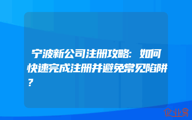 - 宁波新公司注册攻略:如何快速完成注册并避免常见陷阱?