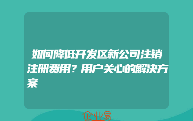 - 如何降低开发区新公司注销注册费用?用户关心的解决方案