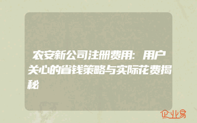 - 农安新公司注册费用:用户关心的省钱策略与实际花费揭秘