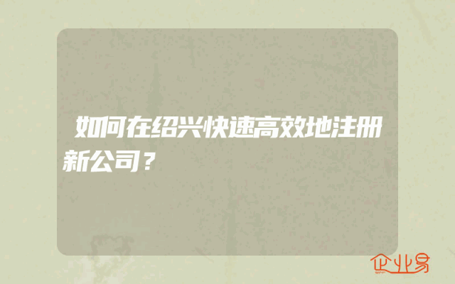- 如何在绍兴快速高效地注册新公司?