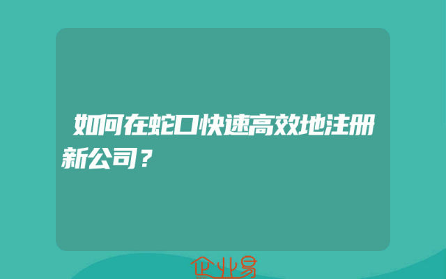 - 如何在蛇口快速高效地注册新公司?解答用户最关心的问题在深圳蛇口地区,注册新公司是一个繁琐的过程,但是通过正确的步骤和方法,可以使这个过程变得更加快速和高效。本文将为您解答关于在蛇口注册新公司的一些常见问题,帮助您更好地了解整个注册流程。第一