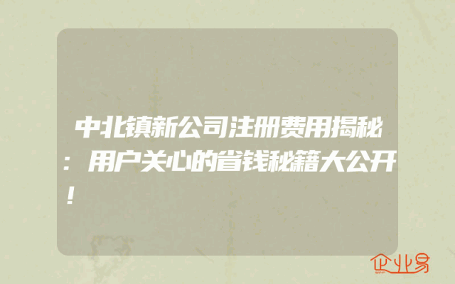 - 中北镇新公司注册费用揭秘:用户关心的省钱秘籍大公开!