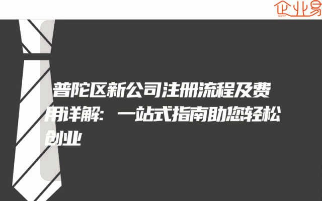 - 普陀区新公司注册流程及费用详解:一站式指南助您轻松创业在创业的道路上,选择一个合适的地点和行业是非常重要的一步。普陀区作为上海的一个重要区域,吸引了众多创业者的关注。本文将为您详细介绍普陀区新公司注册的流程和费用,帮助您轻松创业。一、
